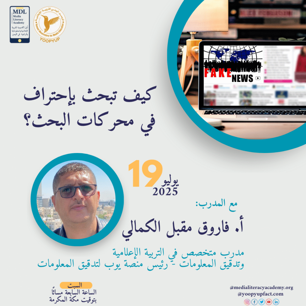 يسر أكاديمية التربية الإعلامية الرقمية في اليمن بالشراكة مع منصة يوب يوب لتدقيق المعلومات أن تعلن عن انطلاق أولى برامجها