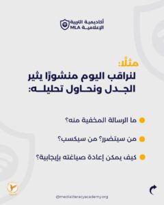 ممارسة التفكير النقدي قبل مشاركة المحتوى تُمثّل حجر الأساس في الدراية الإعلامية والمعلوماتية. وهي تبدأ بطرح الأسئلة الصحيحة: ما مصدر هذه المعلومة؟ هل هي دقيقة؟ هل قد تسيء أو تضلّل؟