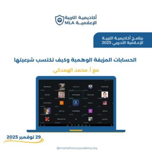 ضمن برنامج أكاديمية التربية الإعلامية الرقمية 2025، اختتمنا اليوم جلسة ثرية قدّمها الأستاذ محمد الهمداني، مدقّق المعلومات المستقل وباحث المصادر المفتوحة. شهدت الجلسة حضورًا واسعًا من دول وخبرات مختلفة، مما أضاف تنوّعًا معرفيًا وأسهم في تعميق فهم المشاركين لظاهرة الحسابات المزيفة ودورها في تشكيل النقاشات الرقمية.