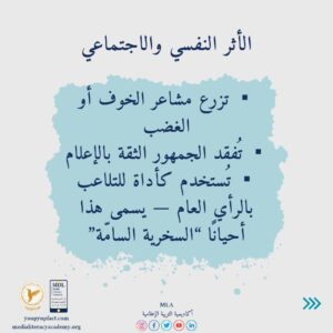 ▪︎ تُفقد الجمهور الثقة بالإعلام