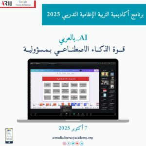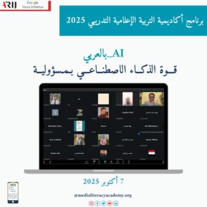 ضمن برنامج تدريبات أكاديمية التربية الإعلامية الرقمية، والتي كانت بعنوان: مفهوم الذكاء الاصطناعي وتطوره / أدوات عملية لإنجاز المهام بذكاء وسرعة/ أخلاقيات الاستخدام المسؤول في الإعلام والتعليم.